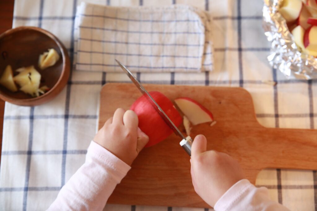 ・切るもの:りんごカッターや包丁など